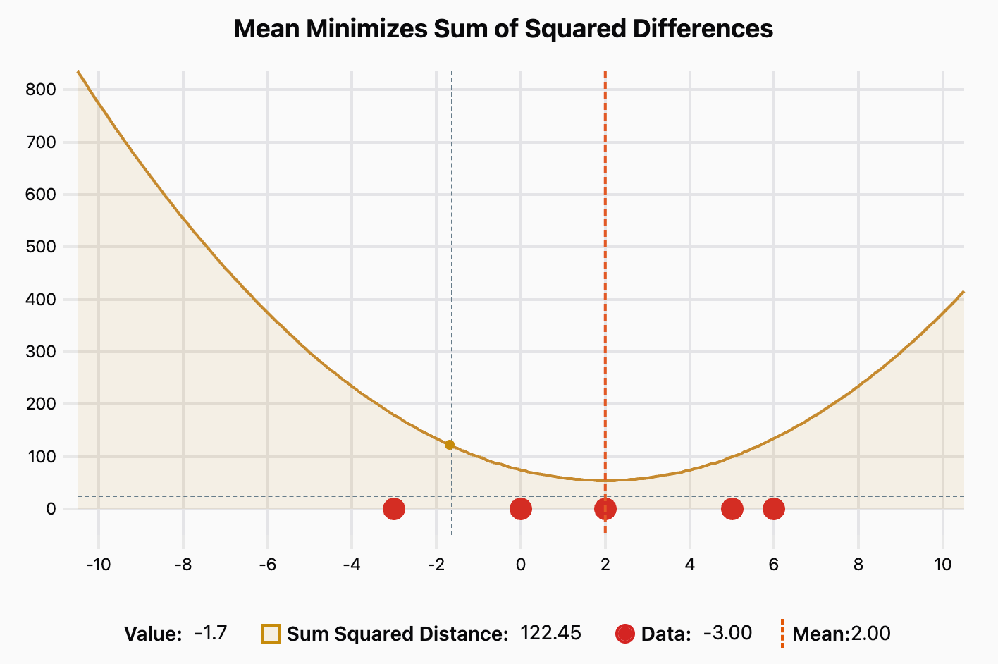 Consider this question: what is the number that minimizes the sum of squared distances between itself and your set of numbers?