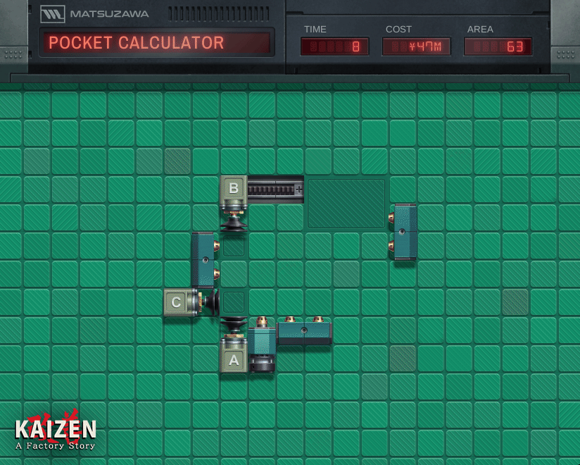 First, despite feeling like a perfect game, it never really got its teeth into me. Just like other Zachtronics games, Kaizen is basically a game about programming, with the addition of heavy spatial reasoning. It is mentally exhausting to play. It feels like doing work. This effect is slightly softened by (intentionally designed) improvements to the developer’s formula, like a more gradual on-ramp, a story to carry you along, and entire mechanics relegated to post-game optional challenges. But nevertheless, I couldn’t play for more than about forty-five minutes at a time. Am I not a real engineer?, I would fret as I switched the game off and cooled off with an obviously-childlike-in-comparison game like P3: Reload. (Unbelievably beautiful menus on that one, by the way.) I did finish, but not with an ounce of motivation to try any of the deeper challenges.