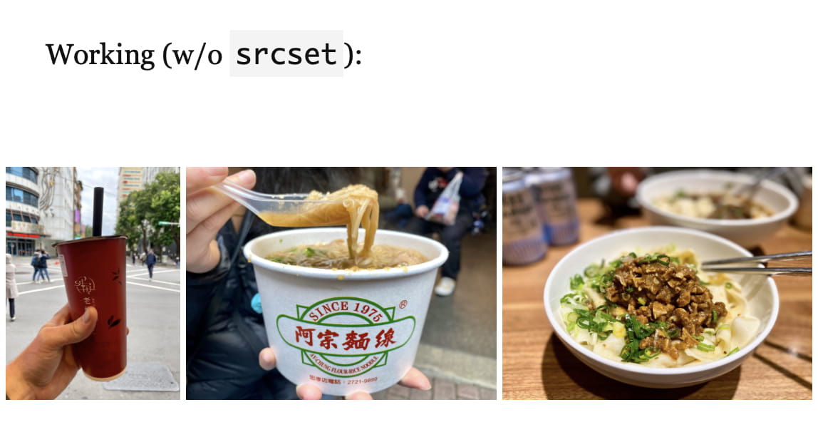 mr1and right saysml1then there is a1margin between them, not2. ↩︎Nagging thought: It’s surprising to me because it seems like the kind of thing that flexbox should handle, and I shouldn’t have to manually specify widths. And I guess it does until the image dimensions are added in… ↩︎