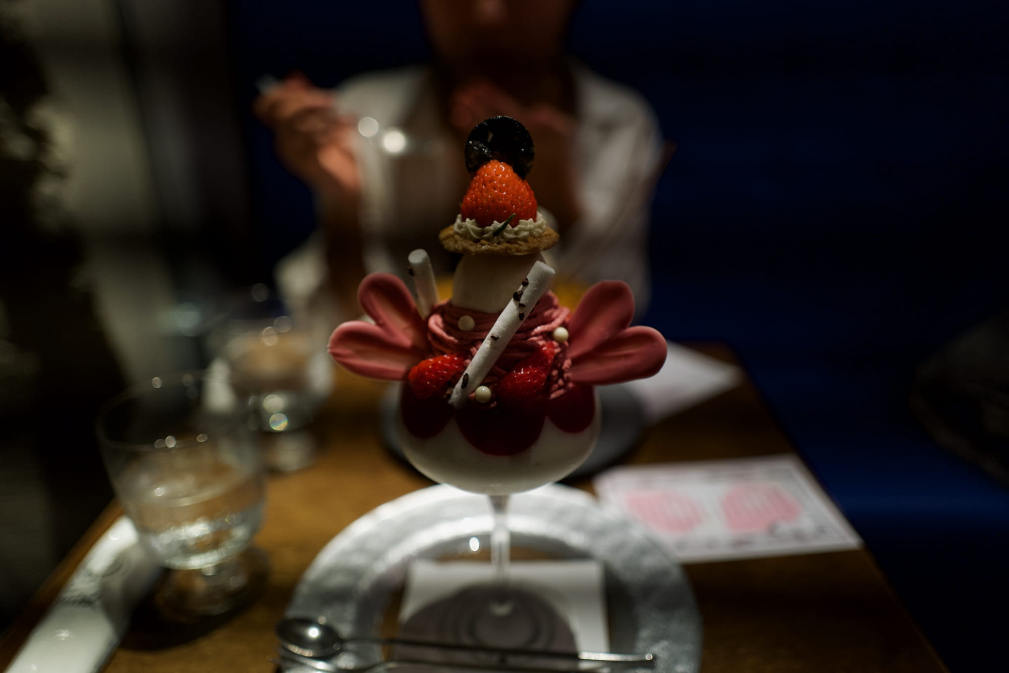 Bad banding on decadent Japanese parfaits. Both top and bottom: [-1ev; f1.7, 1/250s, ISO 1600].