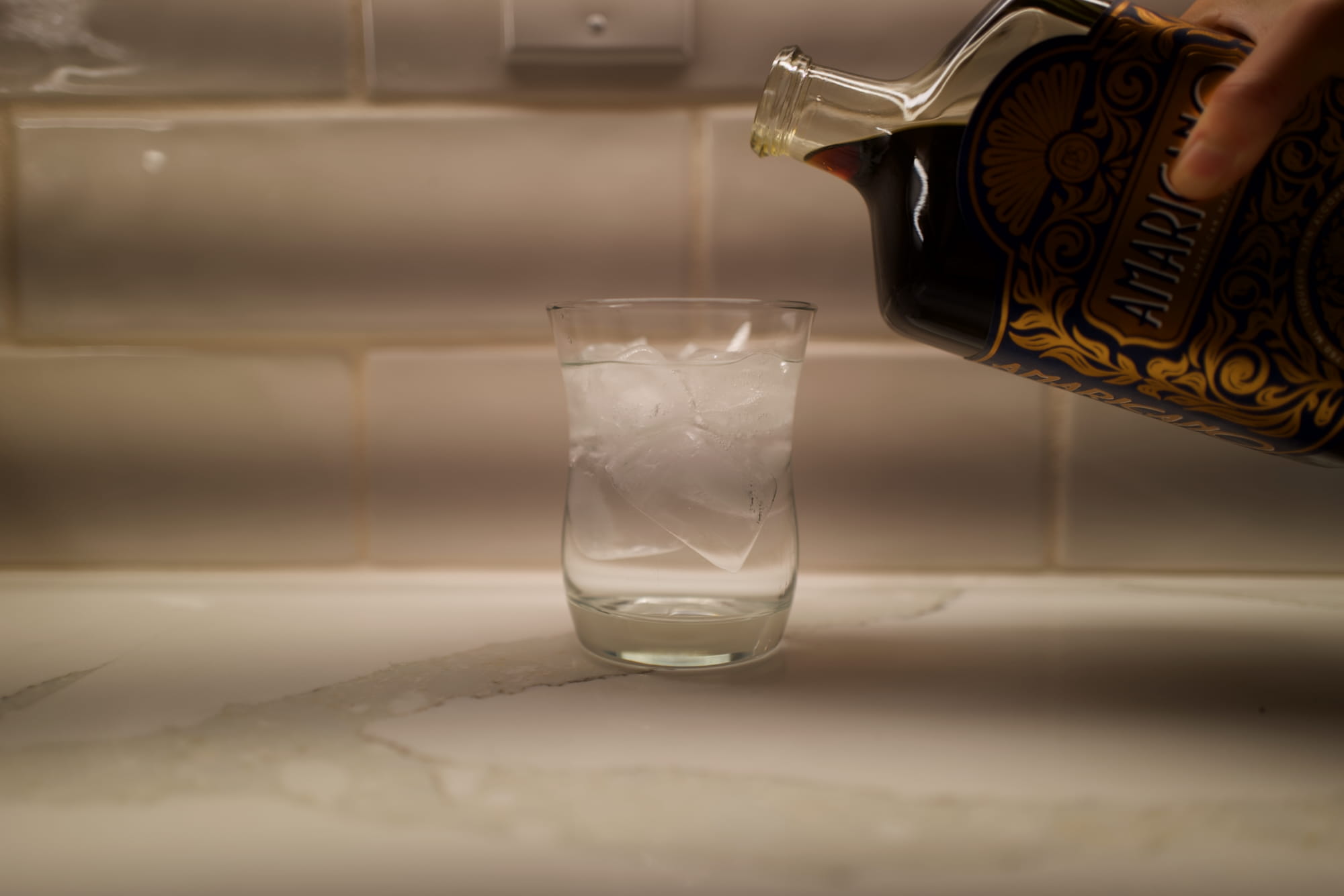 I tried a burst shot to get different stills of a pour. I wanted to capture several moments where the amaro hit the sparking water and the fluids beautifully mixed together.