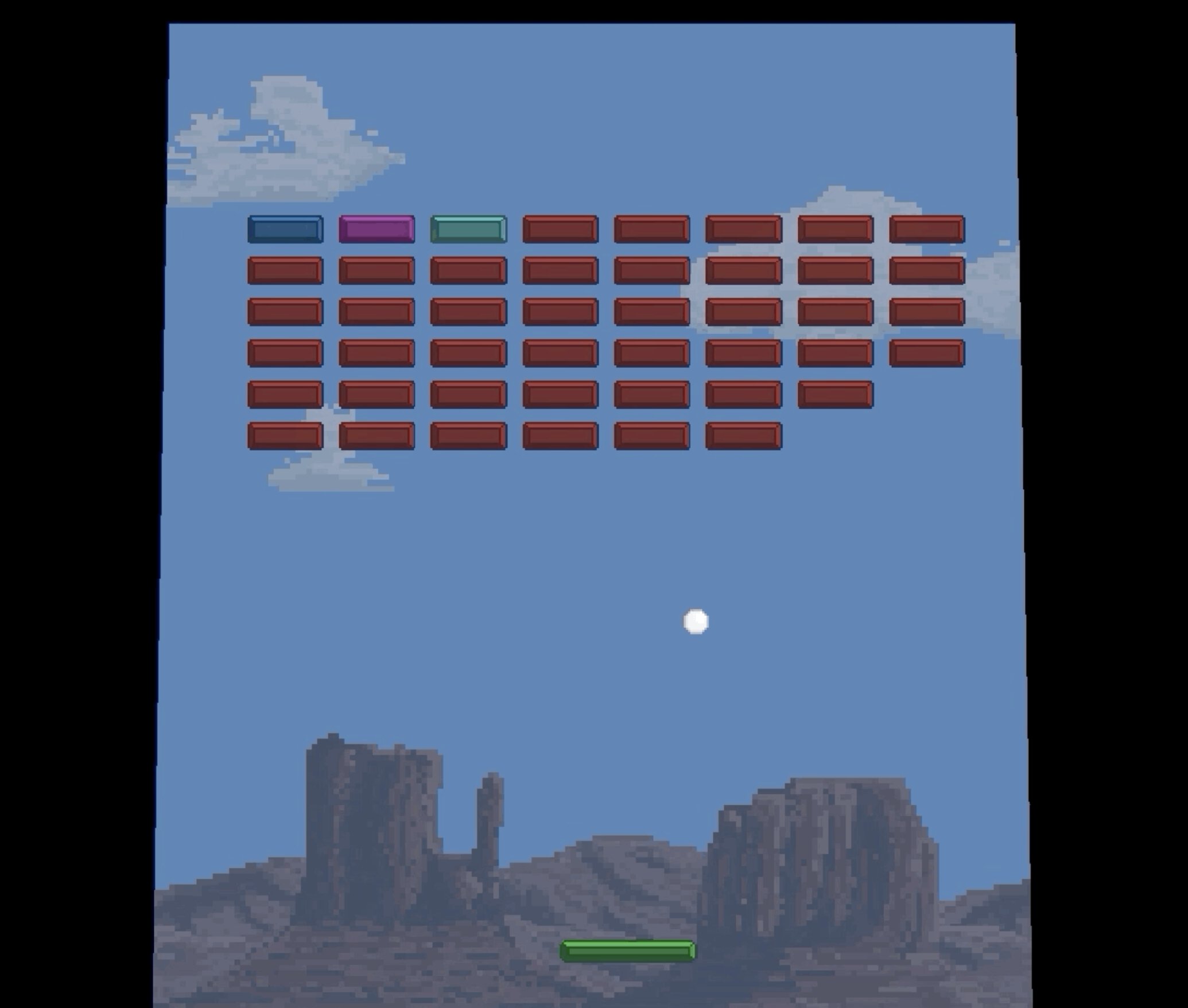 Breakout clone. Collaboration with Cooper Smith. First attempt seriously going for it in Unity. Kind of a rough time.