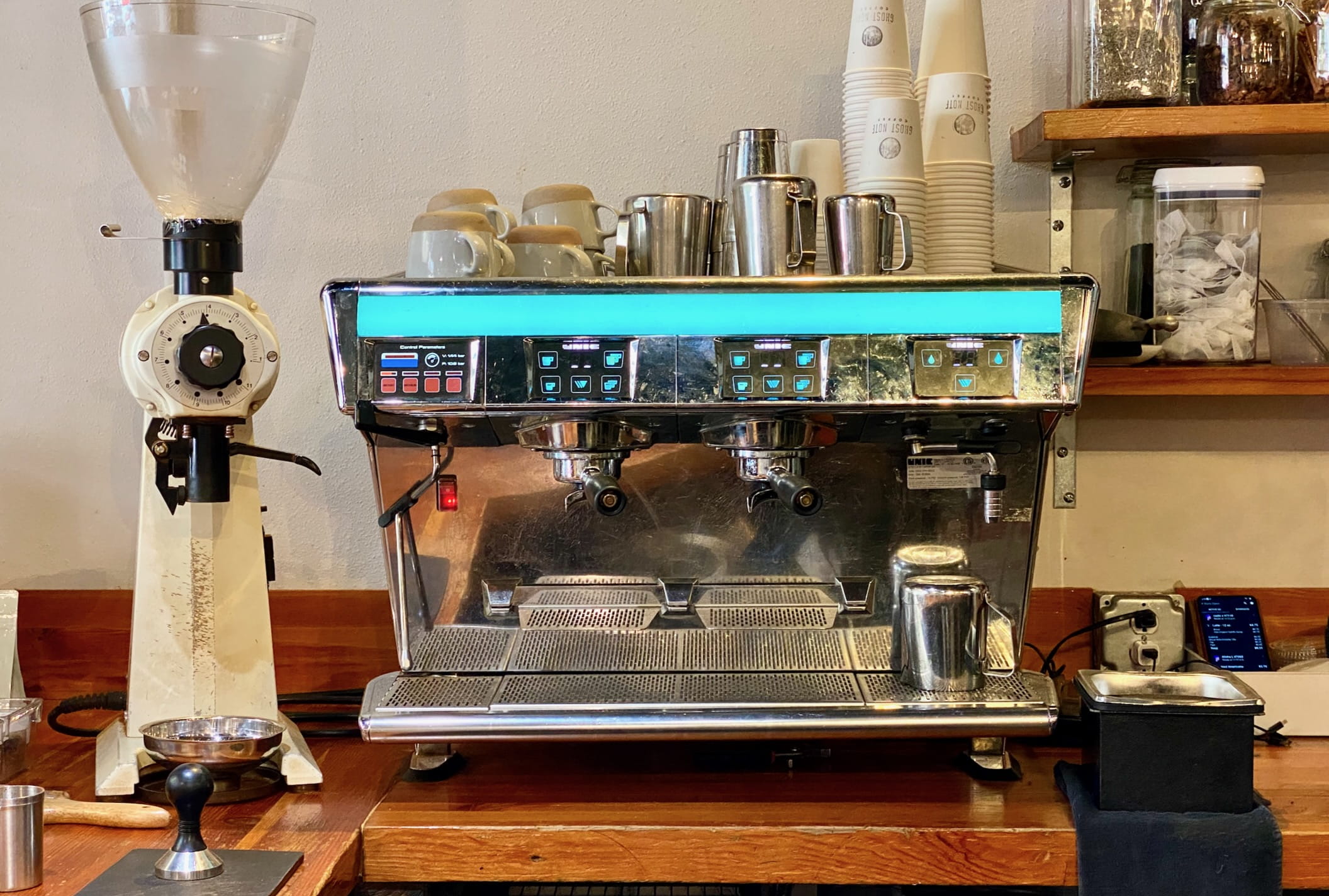 They use an espresso machine (pictured) where you can dramatically adjust the steam’s pressure.