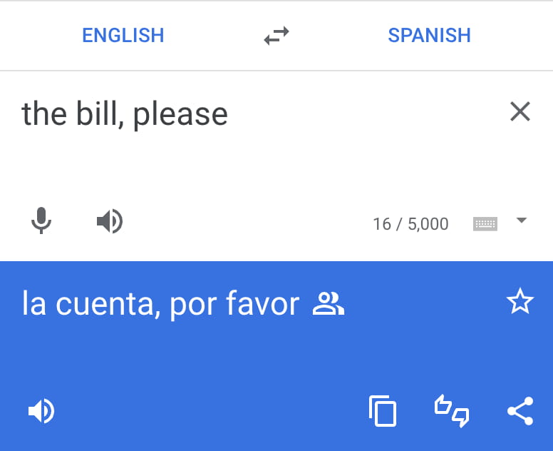 If you ask Google Translate how to say “the bill” or “the check,” it will tell you: