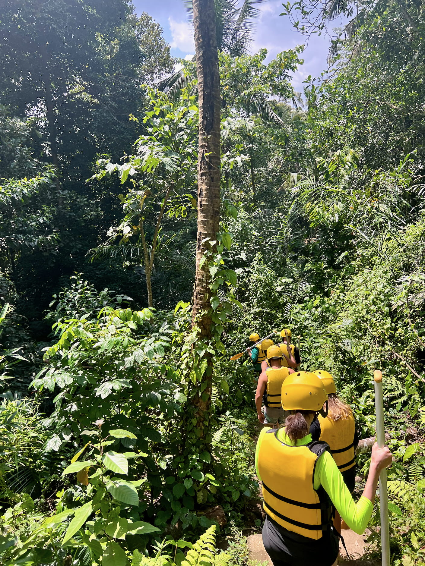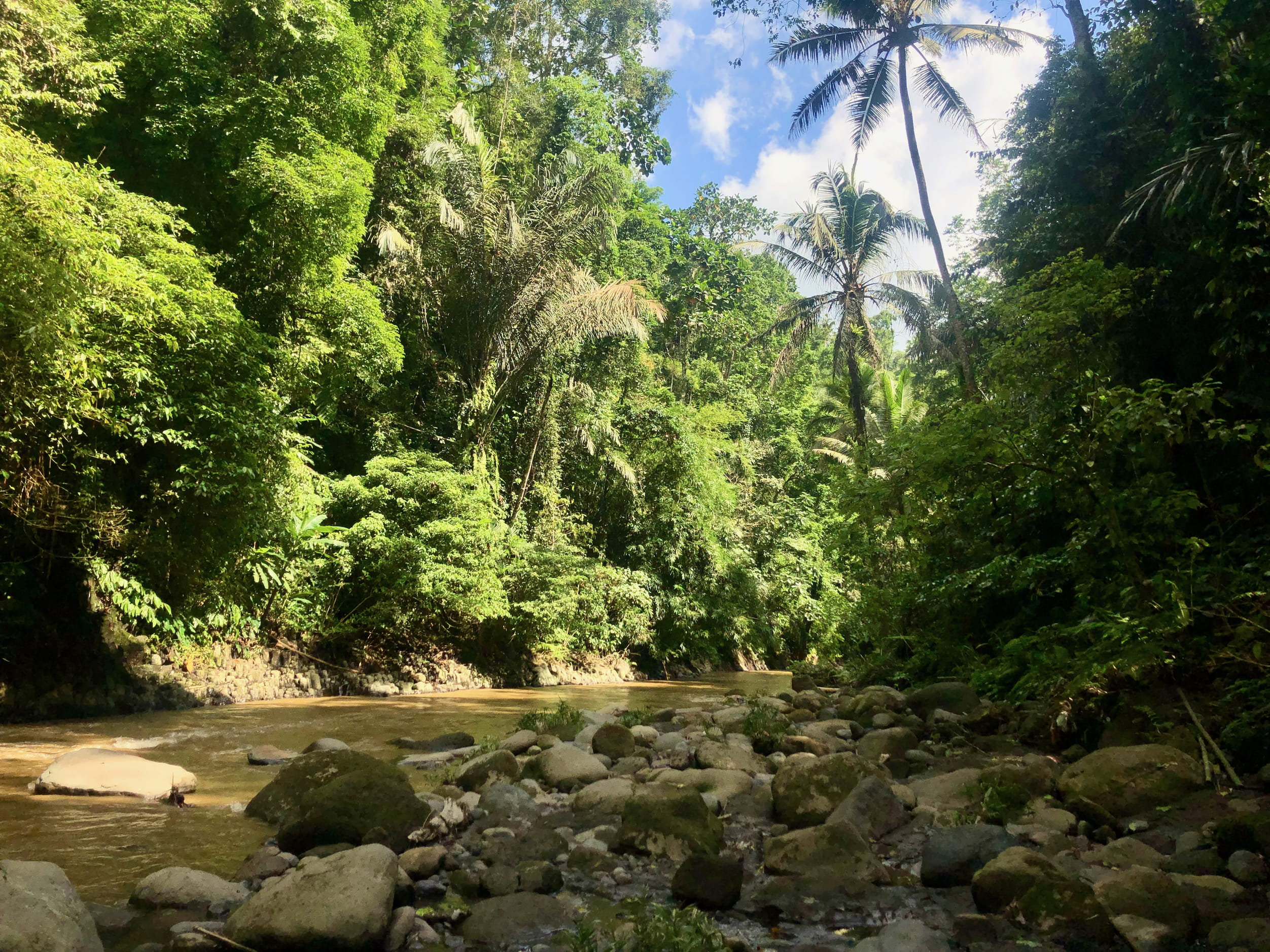 We hike down to one of the must see waterfalls on the island, passing by several Instagram-ready props and displays, made of the same kind of plastic and sub-Ikea material that seems standard worldwide, their flimsy ubiquity surpassing perhaps even Live Laugh Love posters in AirBnbs. Top-40 pop dance music erupts cloyingly from the nearby restaurant, letting everyone know this is a fun time.