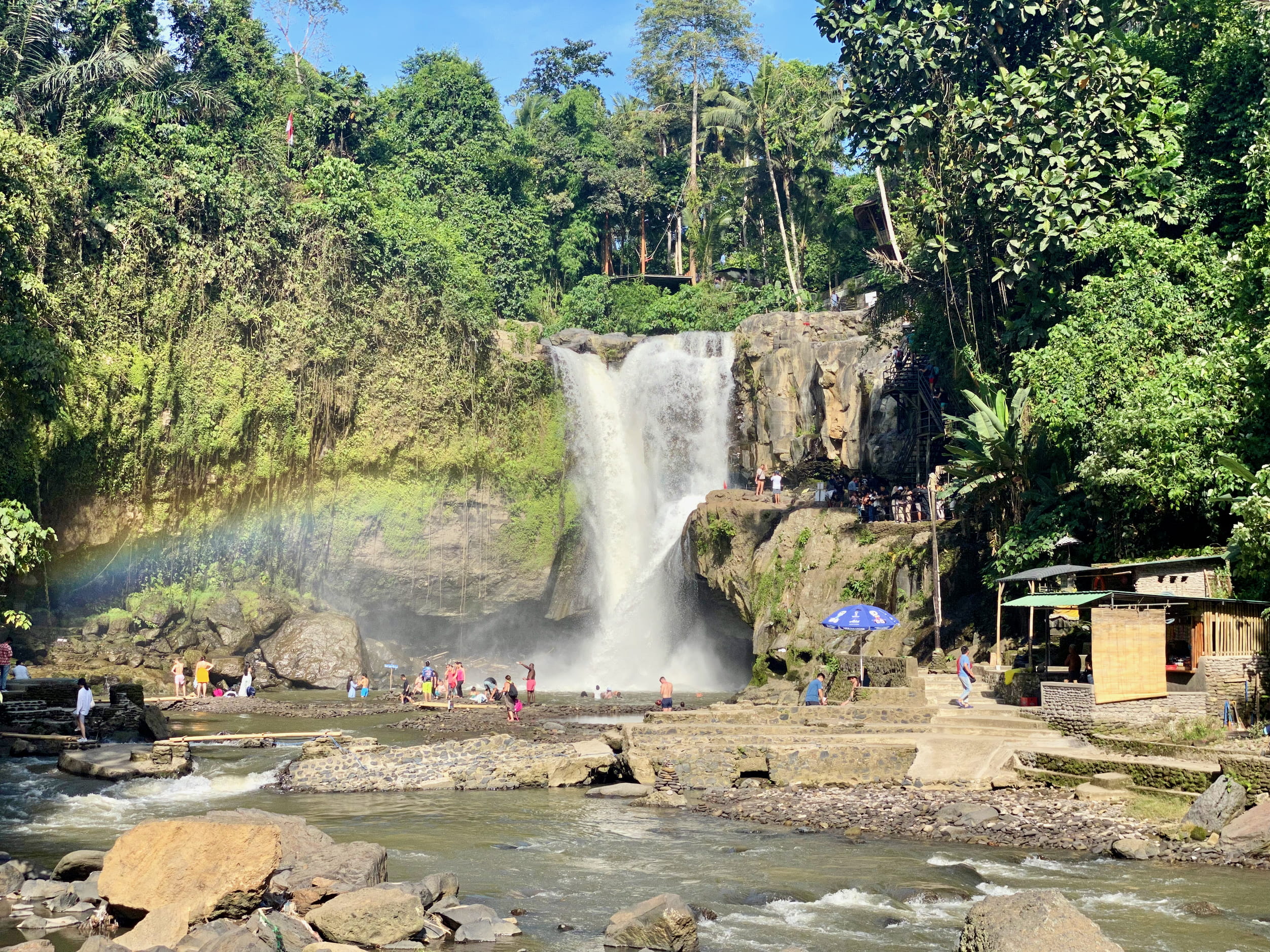 We hike down to one of the must see waterfalls on the island, passing by several Instagram-ready props and displays, made of the same kind of plastic and sub-Ikea material that seems standard worldwide, their flimsy ubiquity surpassing perhaps even Live Laugh Love posters in AirBnbs. Top-40 pop dance music erupts cloyingly from the nearby restaurant, letting everyone know this is a fun time.