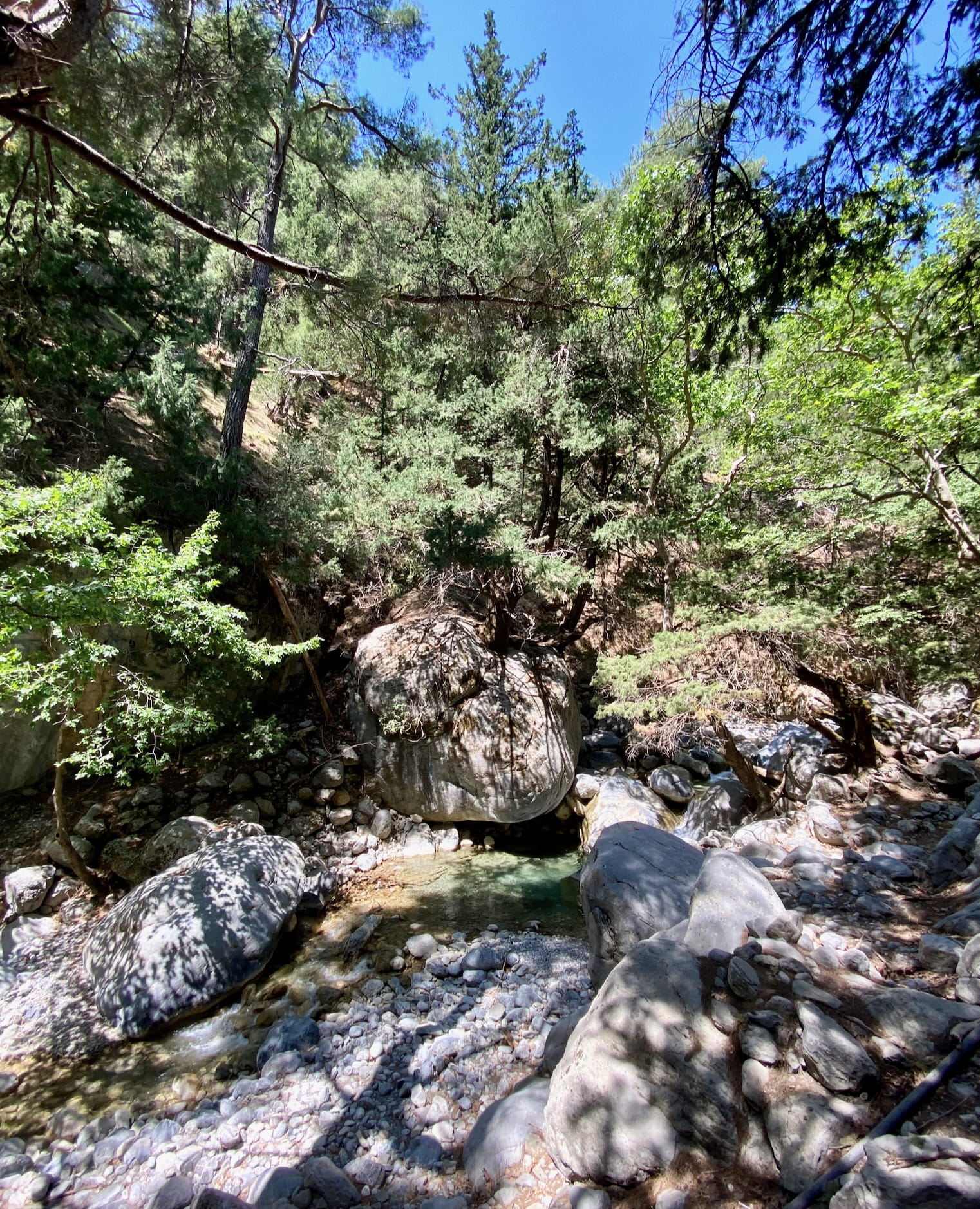 We took an early bus to the entrance, where I bought a stupid Samaria Gorge branded baseball cap because I lost my normal one somewhere in Granada.02 The plan was to walk downhill through the gorge, then end up at a beach, where we take a ferry to another town, and then hope to god there is a bus there to pick us up to head back to Chania (where we were staying).