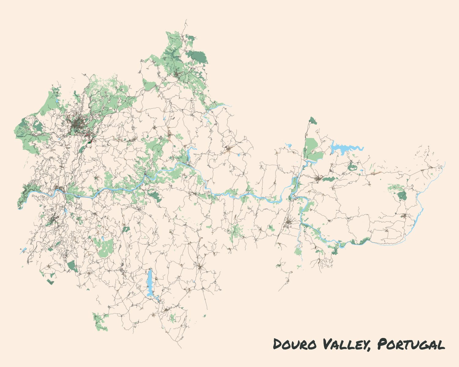 Huge wine region, ~1–2hr drive east out of Porto. Wine grown on terraces. Historically only port, but more “normal” (AKA “table”) wine these days too.