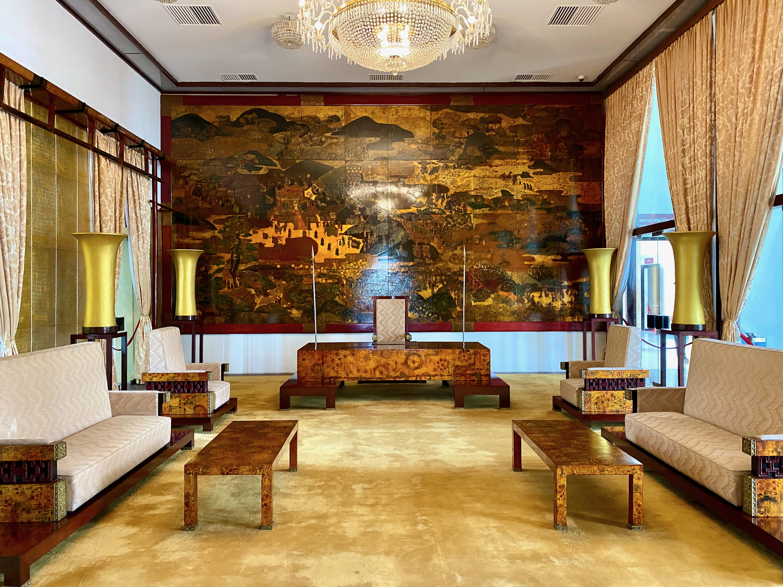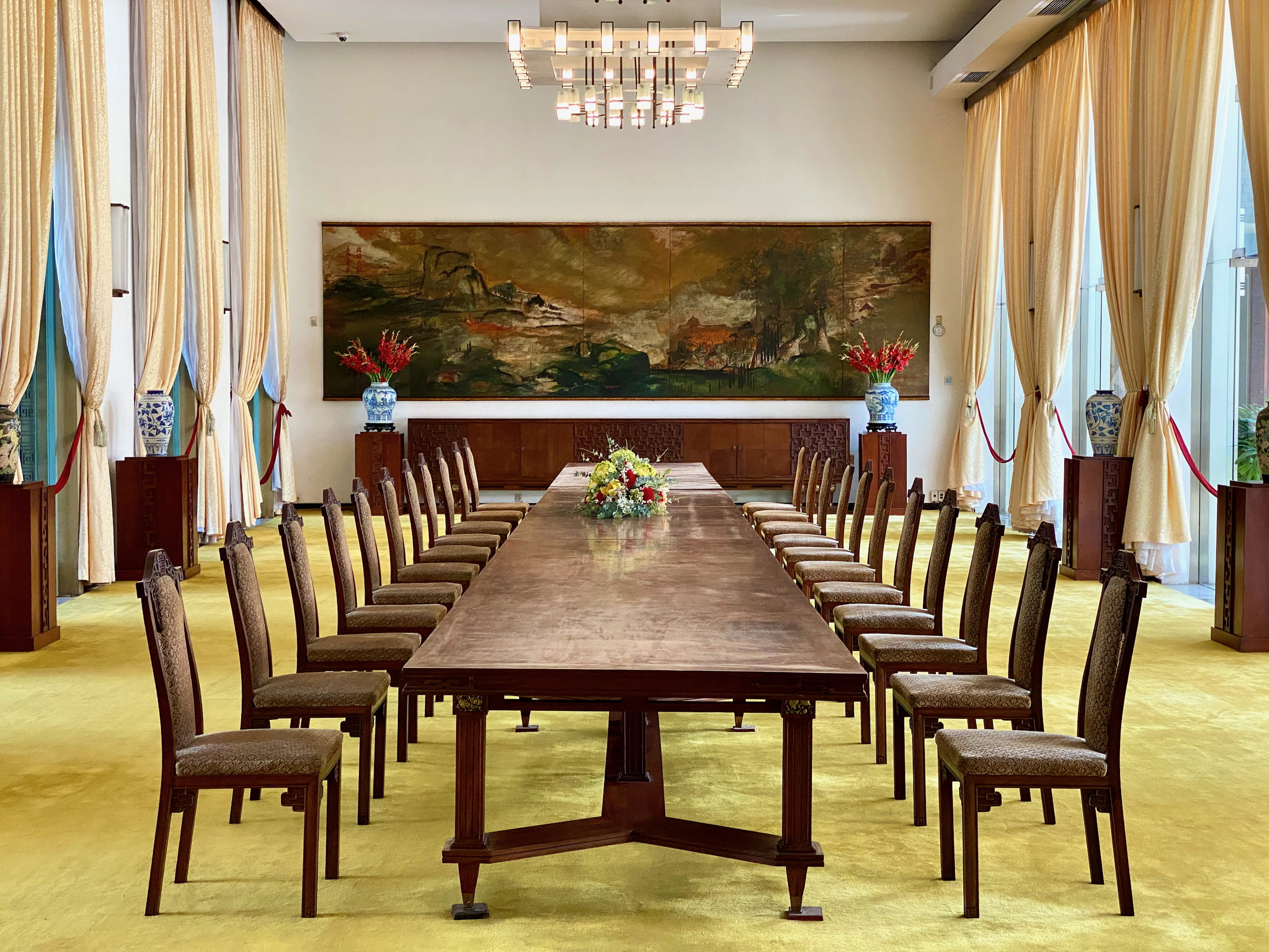 We spent some time in our stay hitting up the in-town Officially Mandated Tourist Activities (OMTAs). (Abiding by the decision we eventually reached with Hanoi, we skipped taking tour busses to any out-of-town OMTAs.) These included visits to ex-seat-of-government locations with impressively symmetric stuff…