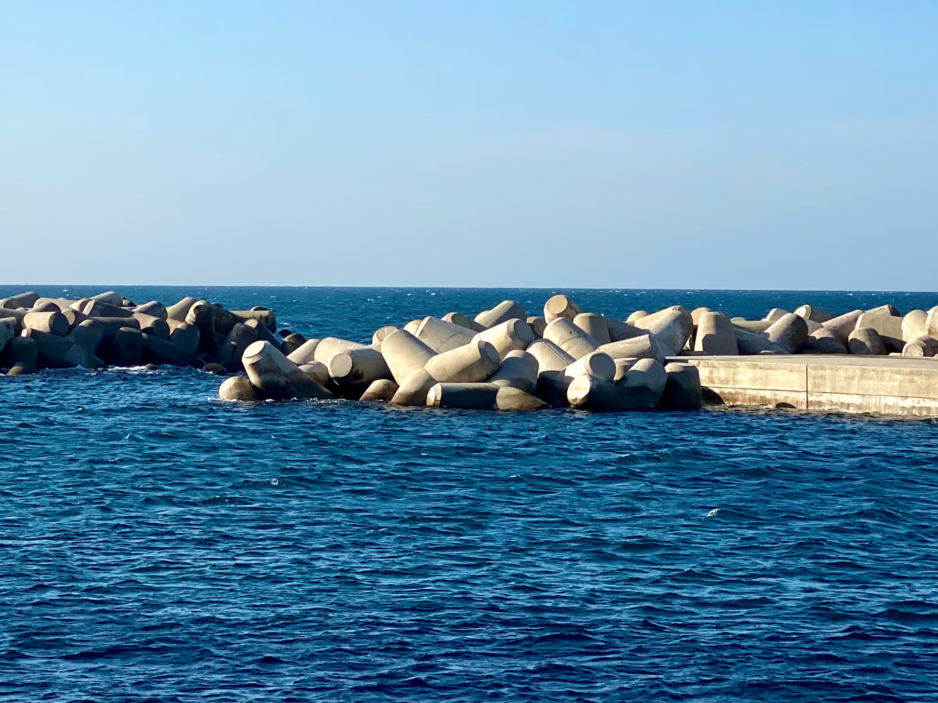 It reminded me of something odd Iād seen several months back. In Donostia, Basque Country (Spain), the waterfront had piles of what seemed to be precisely shaped rocks. It looked like someone had spent a ton of time making hundreds of blocks be a certain size, then dumped them all in the water. Could these be fulfilling the same function as tetrapods?