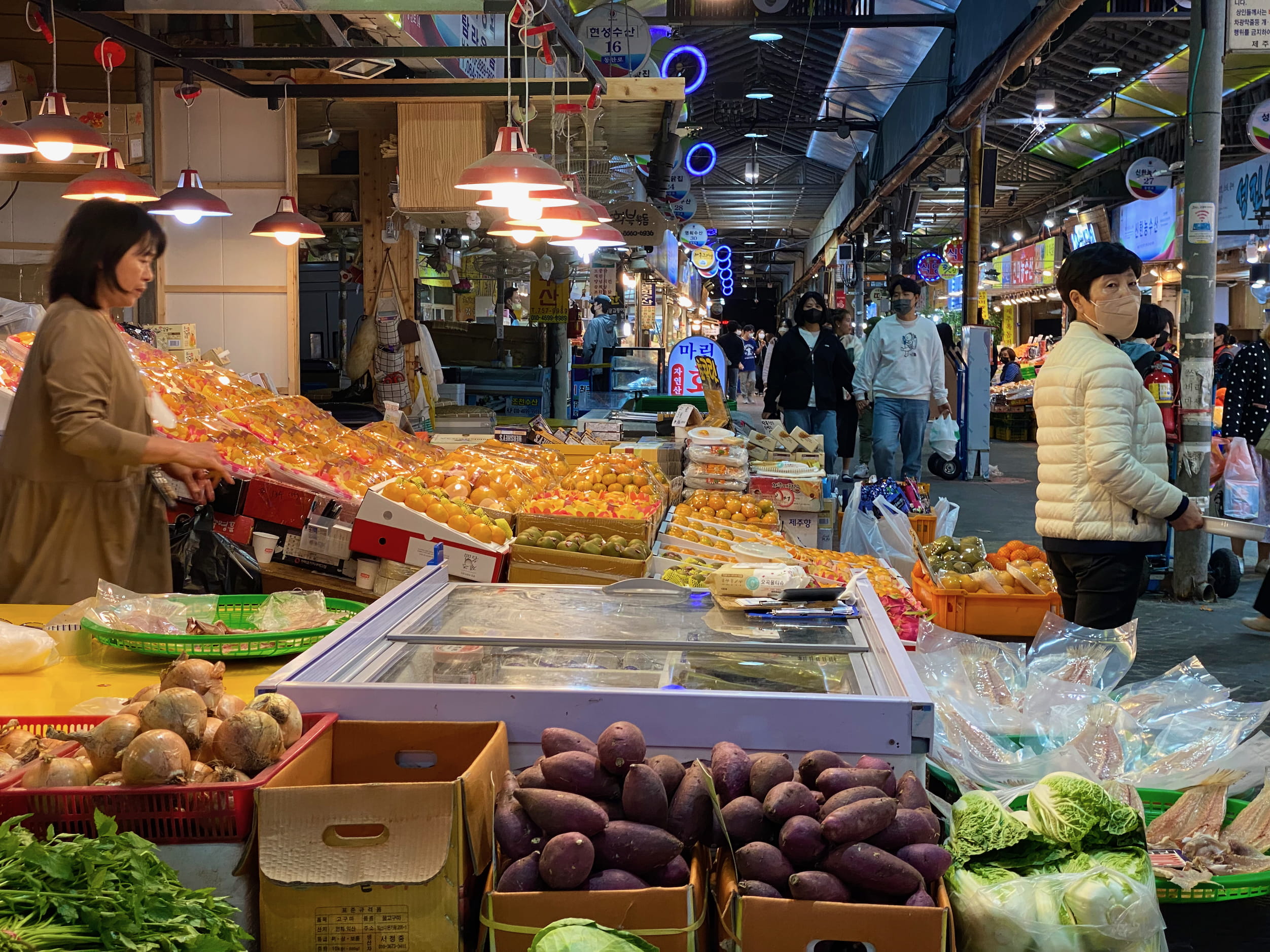 The star of the culinary show in Jeju is black pork. Jeju has a special breed of local pigs with black skin, whose flavor is supposed to be quite special. They have a whole street dedicated to the experience, restaurants all specializing in Jeju black pork.