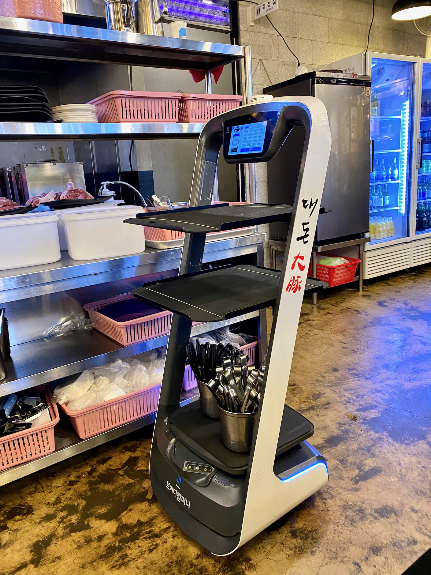 But there was a star of the show: Banchan Bot. He rolled around delivering the requisite million small plates to all the tables, receiving far less affection from the staff than I would have expected given his cheery demeanor and tireless bumbling efforts.
