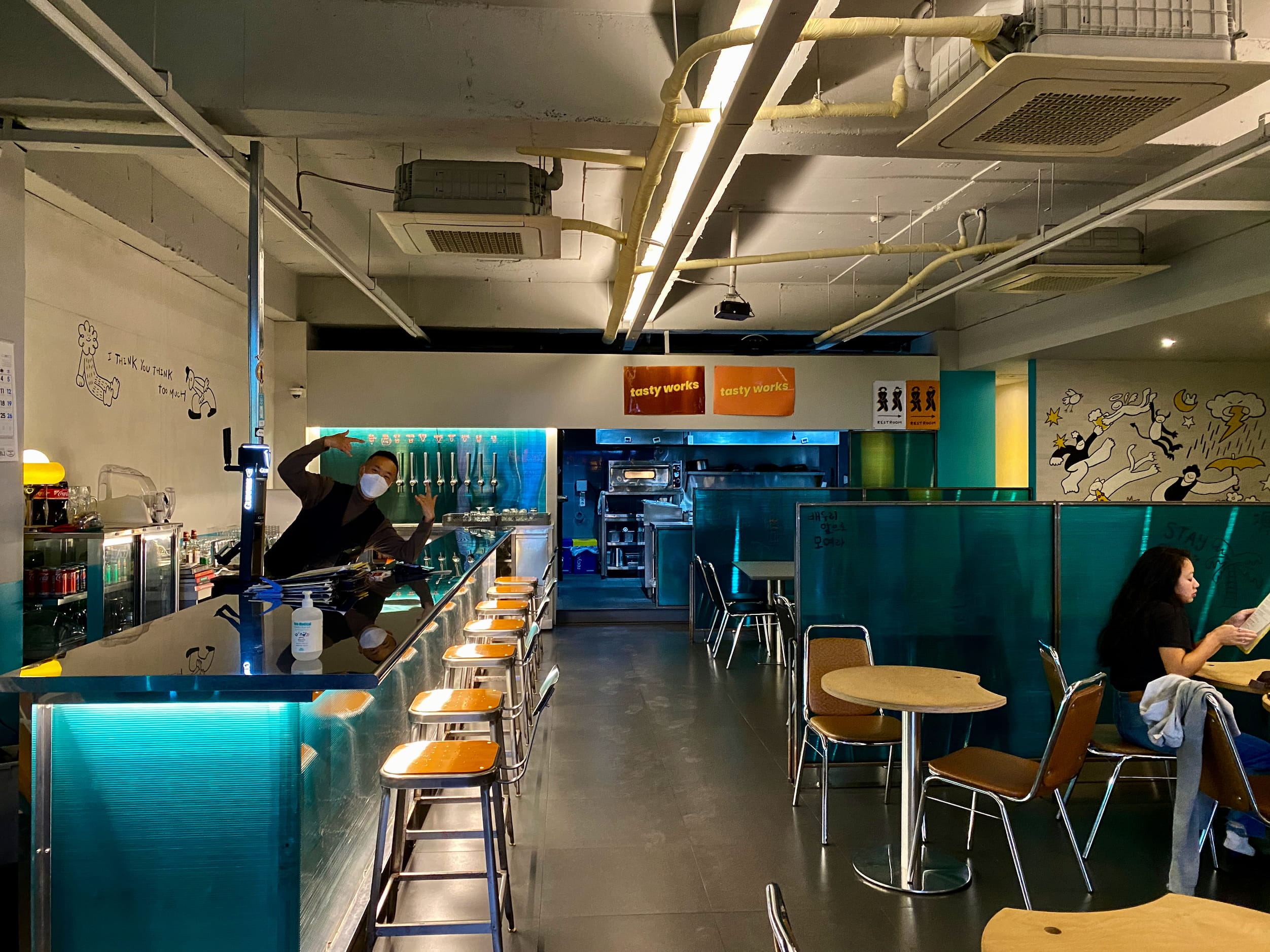 We spent a few nights hanging out at BEDURI SQUARE (ė°°ė리ź“ģ„), chatting up Jae and Lloyd,08 proprietors and equal halves pizza nerd and beer nerd. Not only were they kind and generousāpouring tasters of freshly tapped beers and ciders on the houseābut itās just fun to be somewhere where you can tell the people are excited about what they do. It was surprising to find the best pizza and beer weād have in Korea on Jeju Island, but Iāll take it.