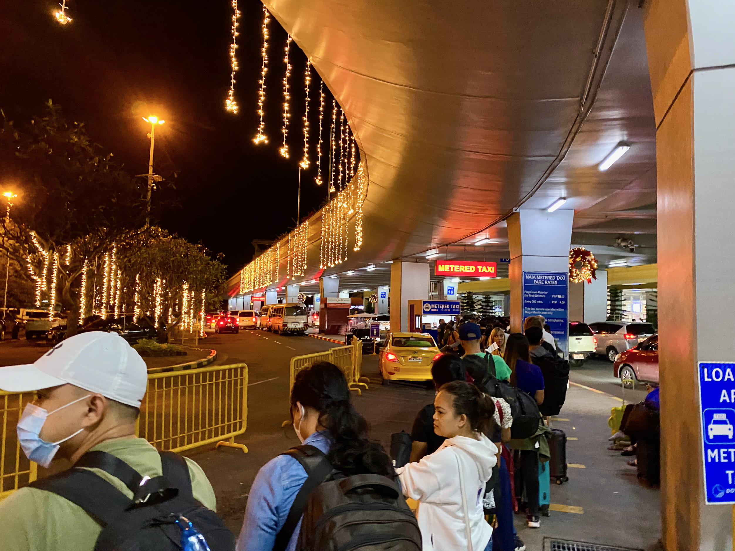 At this point, looking around, we had two choices: metered and coupon (?) taxis. We weren’t thrilled about this—stories abound of taxi ripoffs at best, or muggings at worst07—but there was no other option.08 The Metered taxi has an absolutely enormous queue (dozens of people, literally) and is not moving and no taxis are arriving.