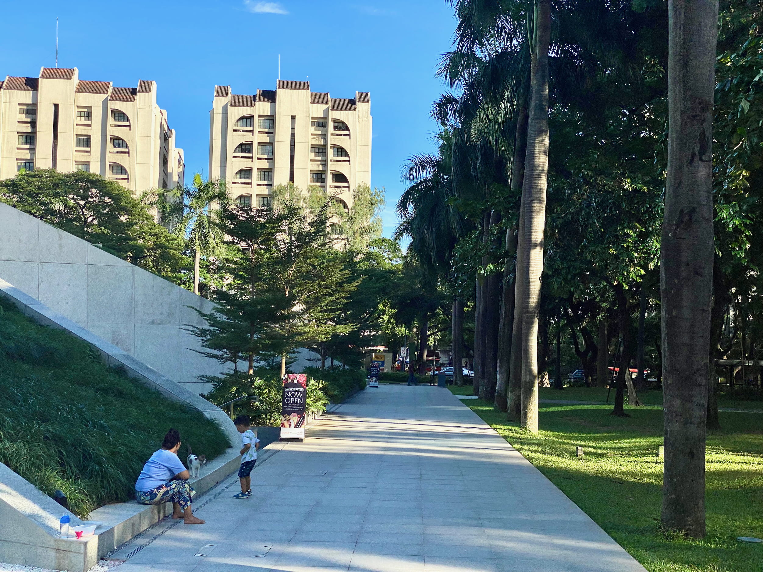 This mall complex had a whole tropical courtyard walkway thing in between the individual malls, in addition to an elevated walkway.