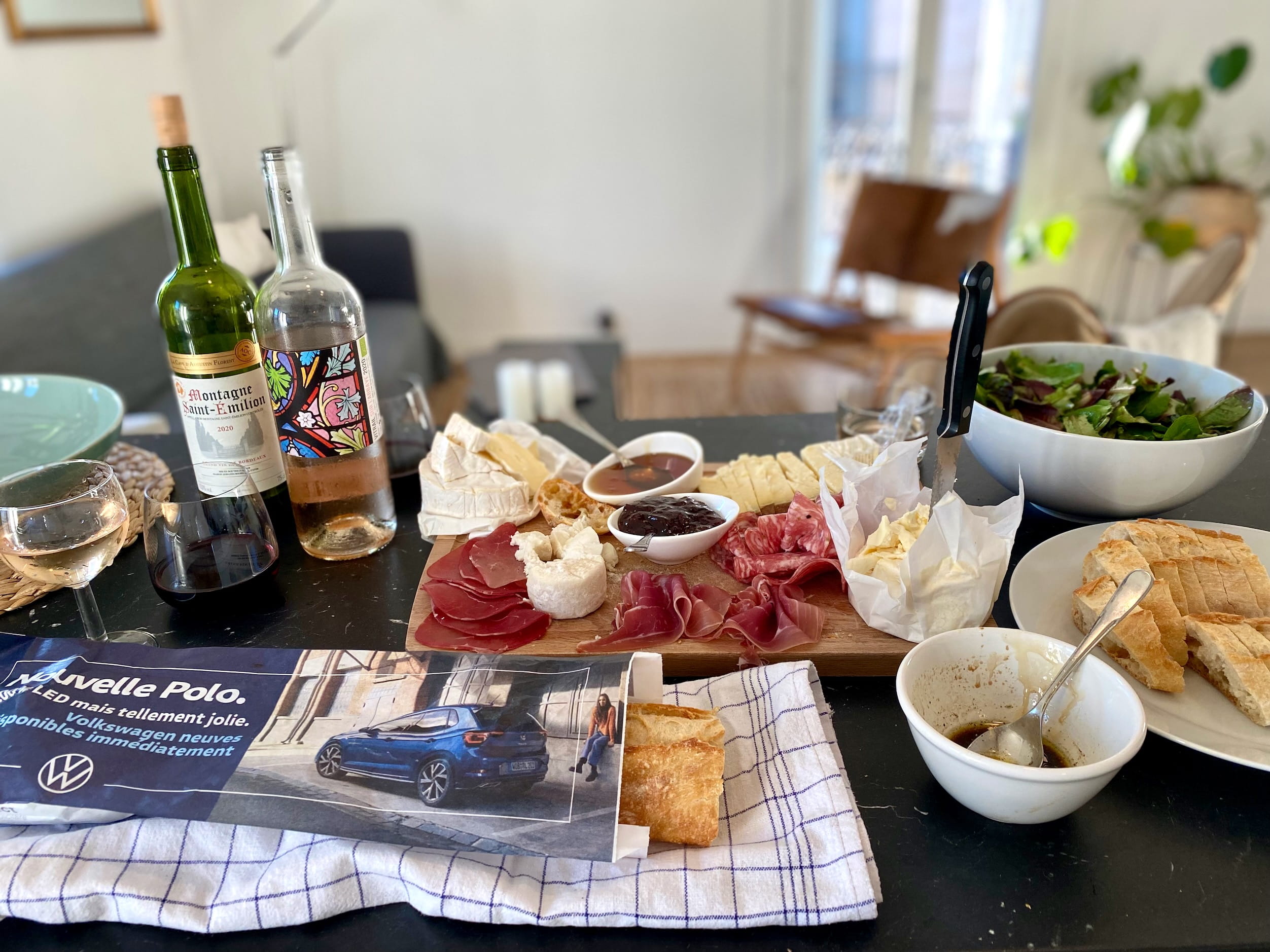 Enough about baguettes. But before I let you go, the same thing is true about cheese and wine. After finding out a restaurant we wanted to go to didn’t exist (/ was under renovation / something Google Maps didn’t know about), we went to the average, run-of-the-mill grocery store and put together a cheese / meat board with cheap, basic stuff that was wildly, murderously delicious. Not because we are gifted. Because the cheap average thing is just that good.