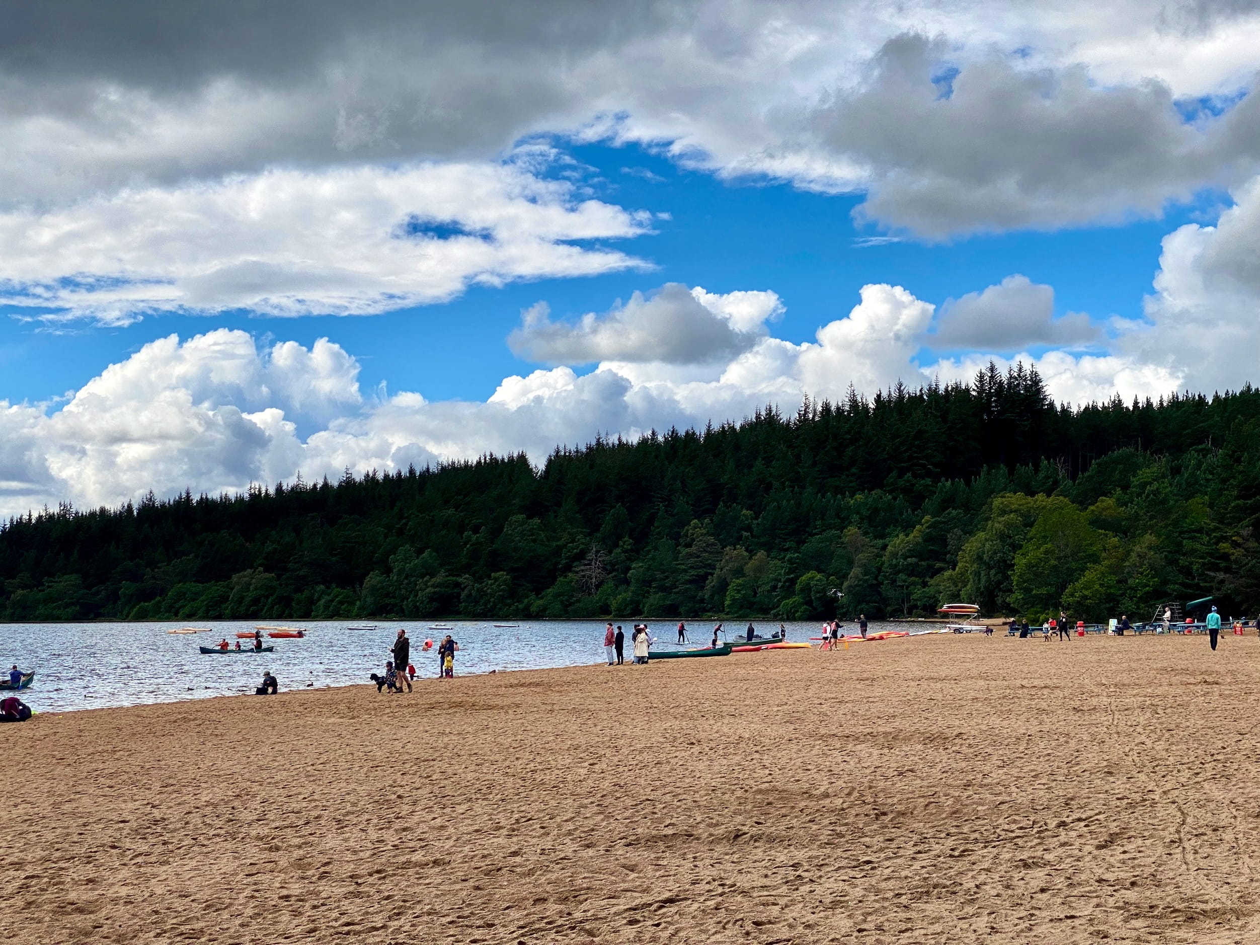Finishing the hike, the nearby Loch Morlich Beach was decidedly too cold to enjoy any water sports. But putting fifty degree shirts off Seattle guy to shame, dozens of families had donned full wetsuits and were rowing around and flying off paddle boards. Respect.