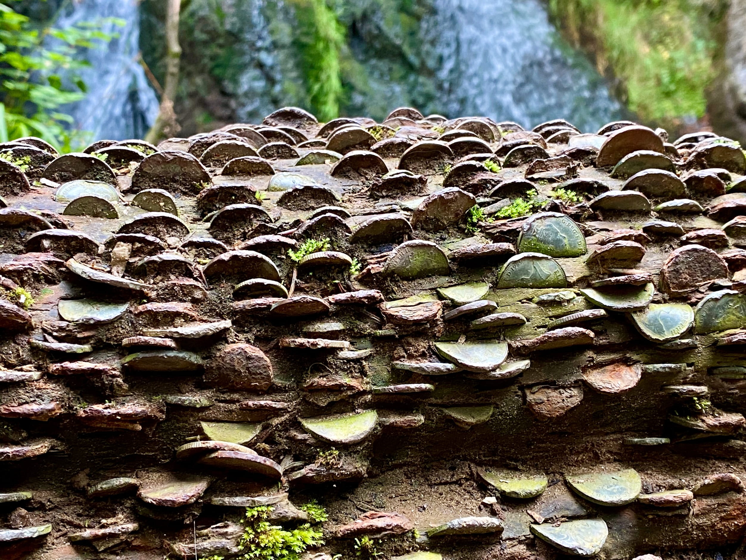 A pleasant tromp through the woods that ends in a miniscule waterfall and a dead tree that seemed convinced the laws of reincarnation take into account how much much spare change you bring with you.
