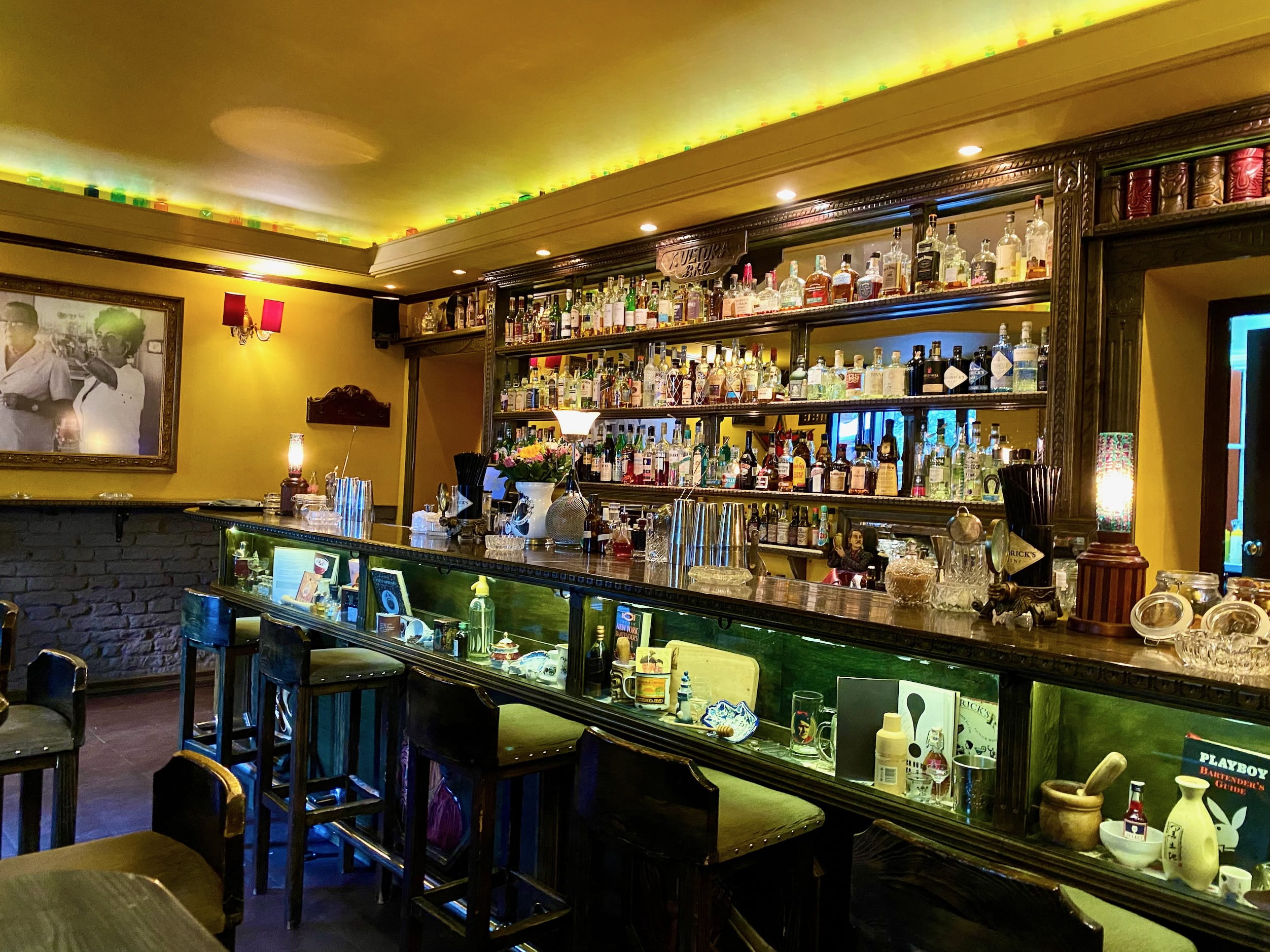 Visiting cocktail bars in new cities is fun. We encountered strong opinions and minimal herby potions in Ljubljana. The bar we visited in Belgrade was willing to build more elaborate rum-based tropical drinks.09 The best part of the place was the big framed picture of Tito—former beloved head of former beloved Yugoslavia.
