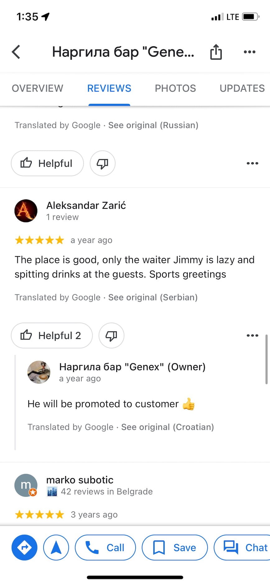 Top: Left: Take a stroll down the lovely BLOK 66A, or perhaps the refined BLOK 28. Bottom: Right: There are some true gems in translated Google Maps reviews.