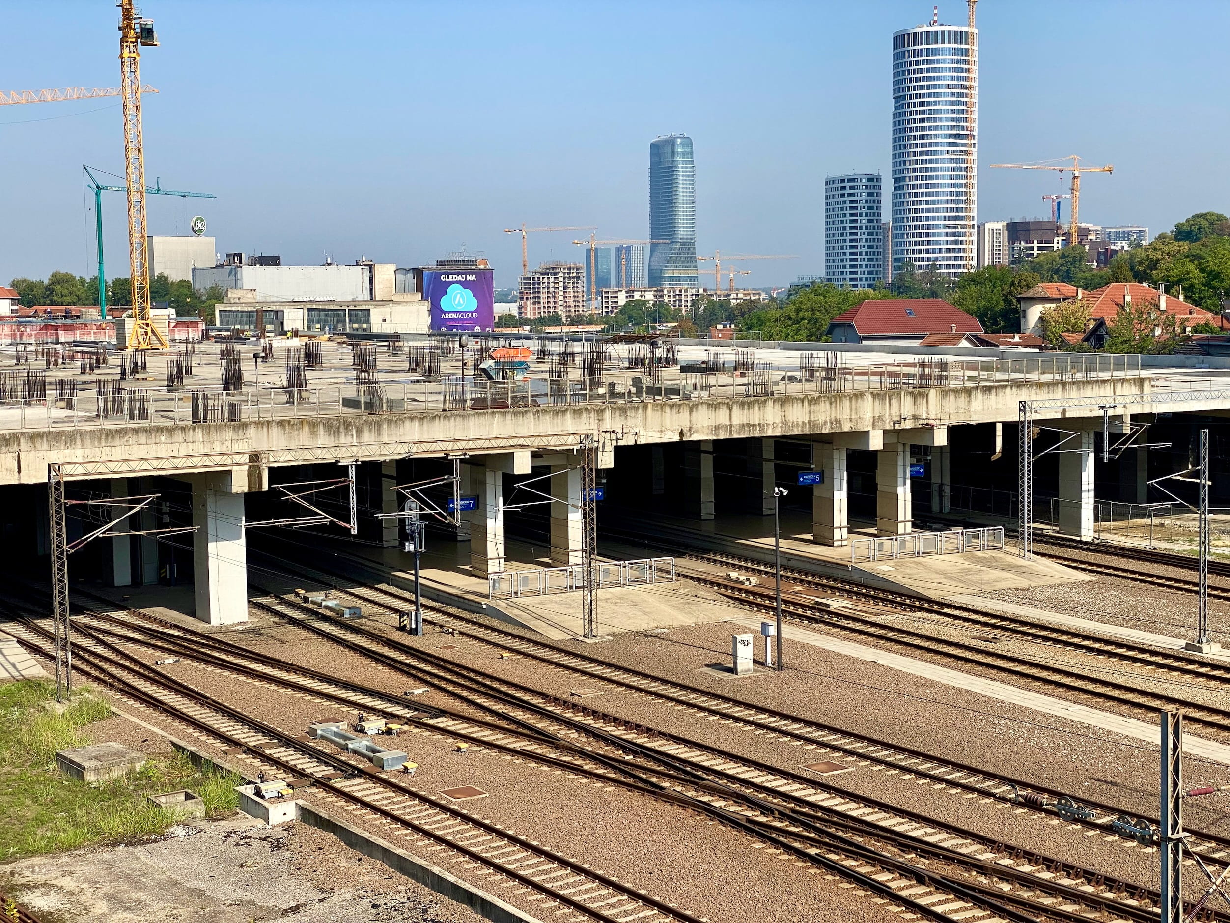 Sometimes you would see both failed construction and newness in the same place. Belgrade’s train station is perpetually half-built, years overdue. Tracks plunge into a great concrete ceiling that has the vague hopes of a second story sticking out of it.