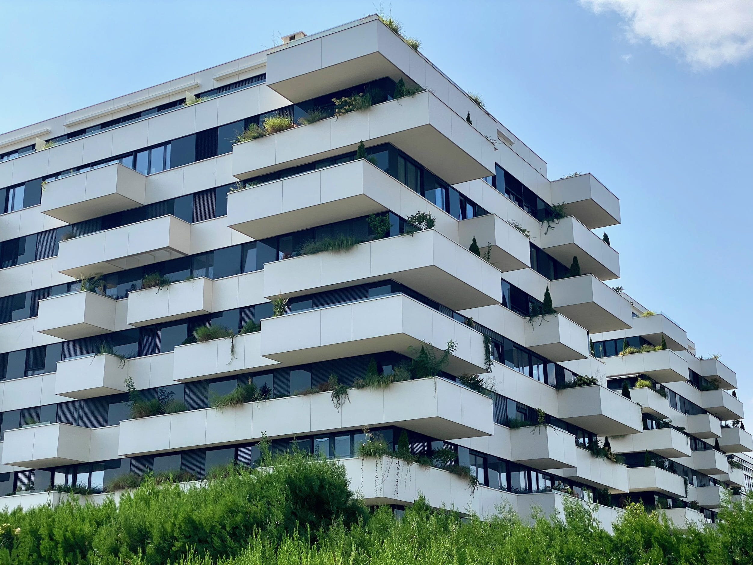 - manicured lawns, flower beds, and art sprinkled about business parks