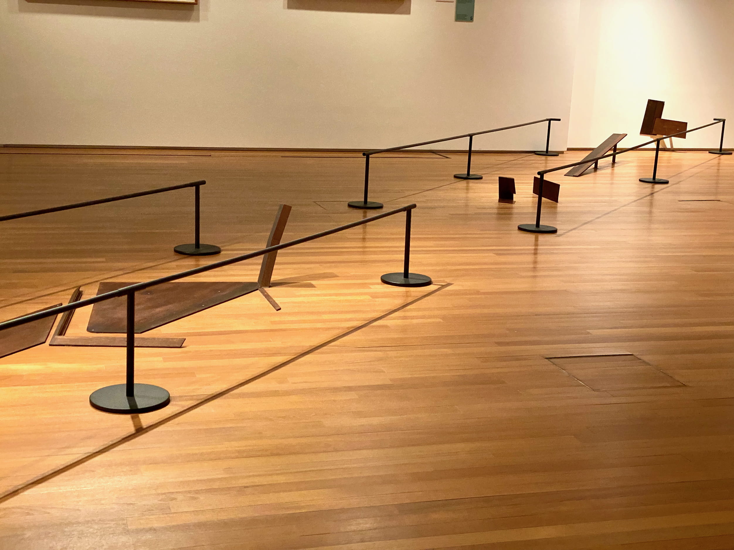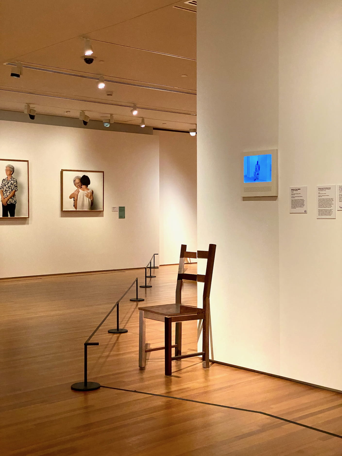 Pieces from the National Gallery were often pleasant but sanitary (above, a chair’s optical illusion), or ever so delicately mentioning the government’s unenthusaism for the arts, e.g., Tang Da Wu’s 1995 jacket from the period when performance art was illegal.