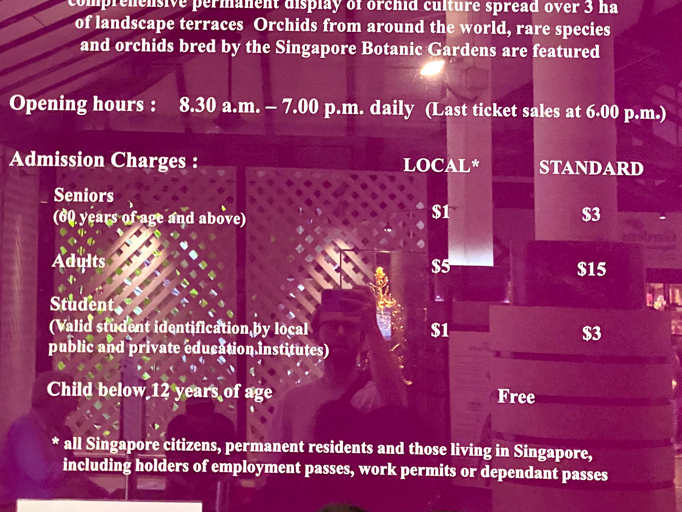 The orchid garden inside is not free, and exhibits one of our recurring gripes that citizens get cheaper prices on everything than outsiders.