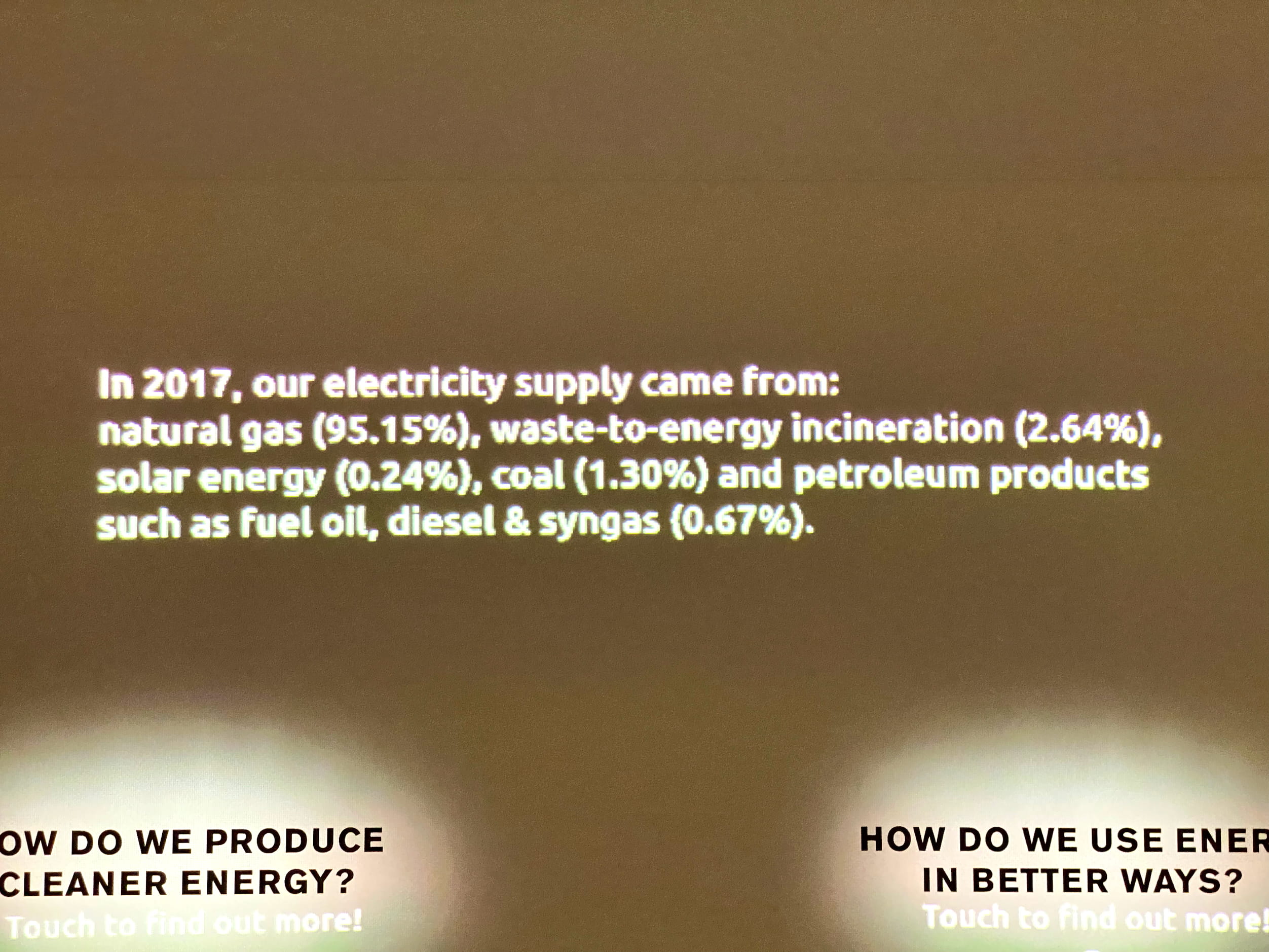 Another way was in the advertised eco friendliness of the city itself. In the urban design museum, they brag about how innovative they are on the environmental friendliness front by doing stuff like burning their poop—sorry, waste-to-energy incineration. But then if you look at how the country actually fuels its energy needs, it’s just 95% burning natural gas.