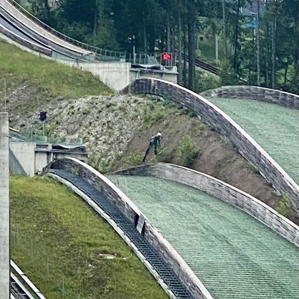 Pit stop. Hey, what do you think they do with ski jumps when it’s off season?