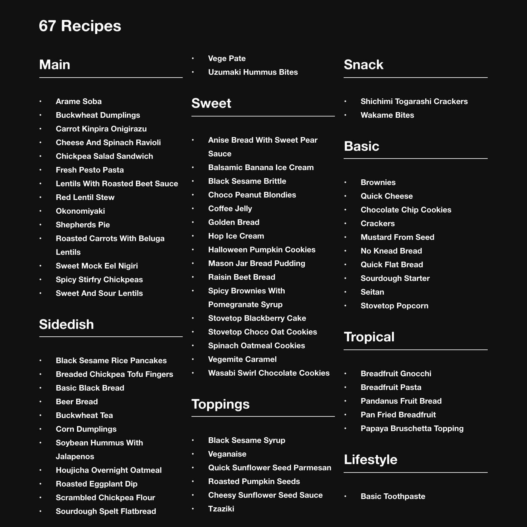 Grimgrains, the Hundred Rabbits’ cooking blog, opens with a complete list of ingredients, followed by a complete list of recipes.