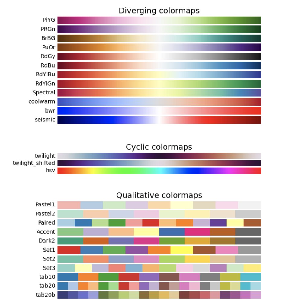 While ordinarily a bane of my existence,01 Matplotlib’s documentation shines on the page where they list—and render—all of the color palettes they have in the library.