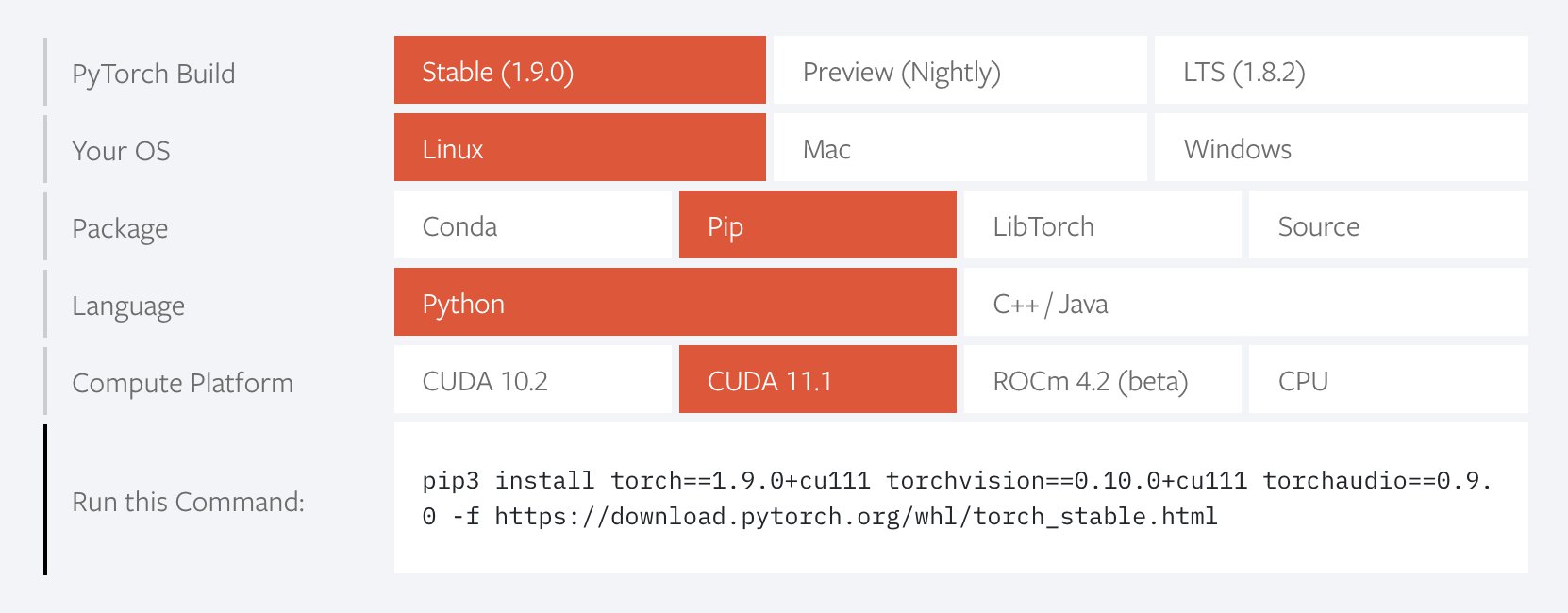 I’ve always been a huge fan of PyTorch’s installation instructions. It concisely but completely enumerates the set of installations. I never mind clicking through.
